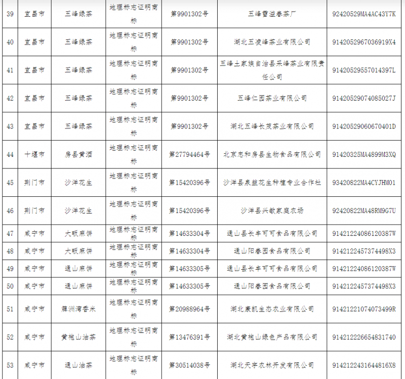 根據(jù)《地理標(biāo)志專用標(biāo)志使用管理辦法(試行)》和《國家知識(shí)產(chǎn)權(quán)局辦公室關(guān)于做好地理標(biāo)志專用標(biāo)志使用管理有關(guān)工作的通知》(國知辦函保字〔2020〕250號(hào))有關(guān)規(guī)定,經(jīng)國家知識(shí)產(chǎn)權(quán)局地理標(biāo)志保護(hù)數(shù)據(jù)管理系統(tǒng)核驗(yàn),省知識(shí)產(chǎn)權(quán)局對我省符合地理標(biāo)志專用標(biāo)志使用要求的“湖北盤龍國瑞醫(yī)藥有限公司”等2家地理標(biāo)志保護(hù)產(chǎn)品生產(chǎn)者和“武漢市蔡甸區(qū)萬順農(nóng)產(chǎn)品專業(yè)合作社”等51家地理標(biāo)志證明商標(biāo)被許可人名單(見附件)予以公布,專用標(biāo)志下載口令以紙質(zhì)件形式統(tǒng)一下發(fā)至各市(州)知識(shí)產(chǎn)權(quán)局。